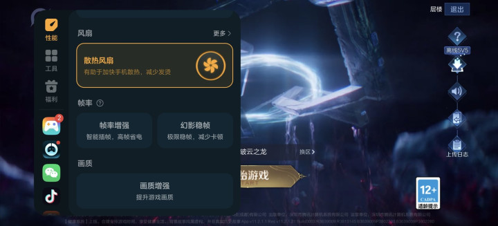 从参数上看荣耀WIN的性能表现可以说非常强了,来看看实际的游戏表现,看看它能不能配得上“手游性能怪兽”的称号。测试前将室温调整至25度,将荣耀WIN的屏幕亮度调整至200nit,在游戏助手里将散热风扇打开后开启测试。